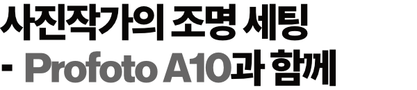 “A10의 크기가 먼저 눈길을 끌었고, 완전히 마음을 사로잡은 건 놀라울 정도로 간단하고 직관적인 사용 방식이었습니다. 특히 버튼이 없는 신형 Profoto Connect와 함께 사용할 때는 정말 직관적입니다. 켜기만 하면 바로 작동하죠. 저는 A10을 카메라에 장착해 사용할 수도 있고, 오프카메라로 무선으로 사용할 수도 있어요. A10의 리튬이온 배터리는 엄청나게 오래가고, 자석으로 탈부착되는 디퓨저 돔은 제가 항상 추구하는 부드럽고 자연스러운 느낌을 내는 데 딱입니다”