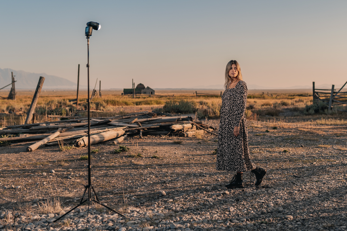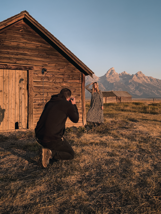 이번 촬영은 와이오밍의 Grand Teton National Park 내에 위치한 역사적인 개척지 Mormon Row에서 진행되었습니다. Matt와 모델 Sam은 해가 수평선 위로 떠오르는 순간을 기다리기 위해 이른 새벽에 출발했습니다.