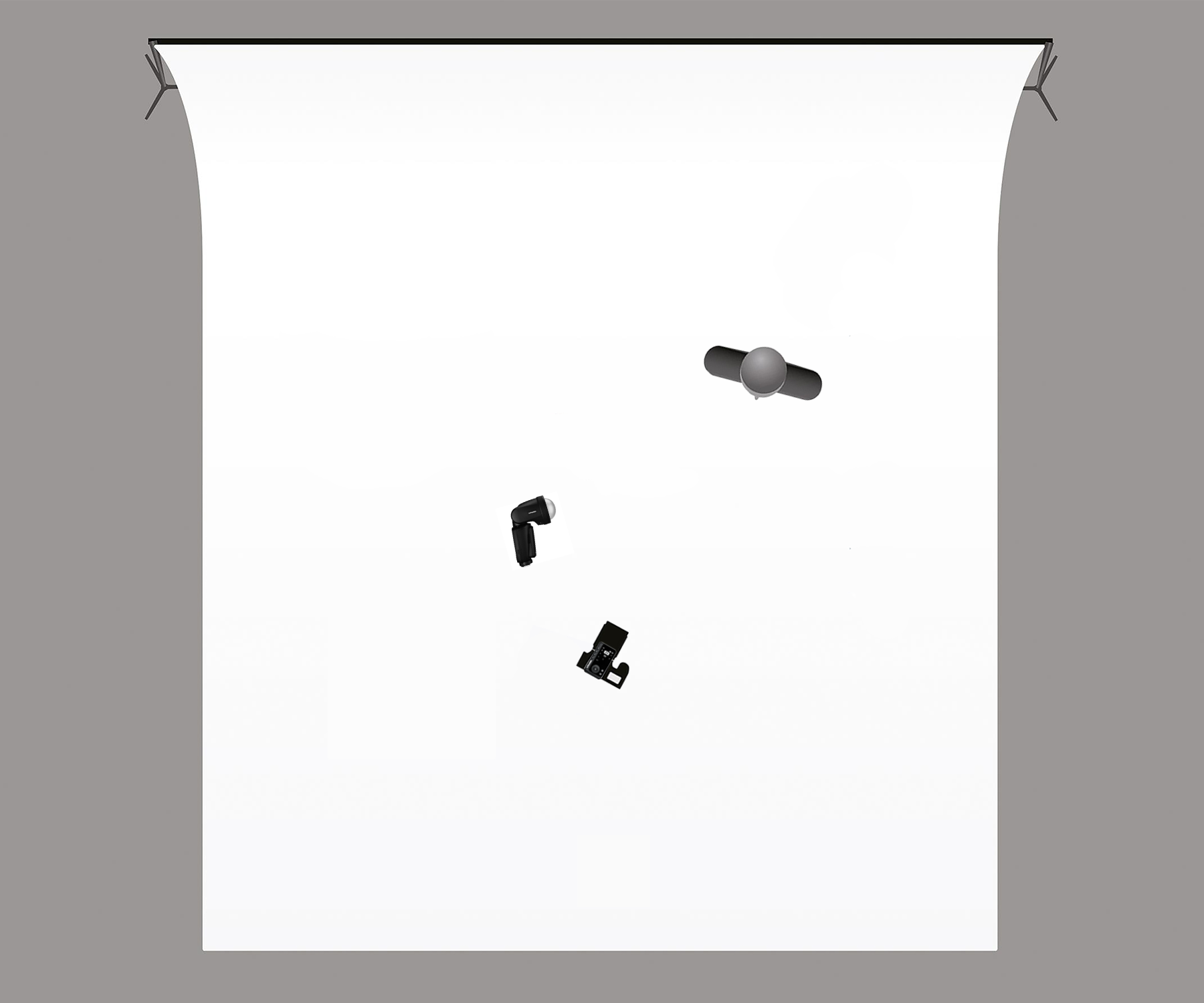 2️⃣조명 스탠드에 Dome Diffuser를 장착한 Profoto A10을 고정한 후 조명을 비스듬히 배치합니다.